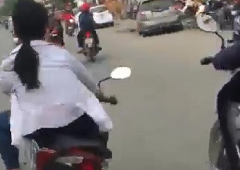 Nữ sinh đầu trần lạng lách, đánh võng giữa phố đông người