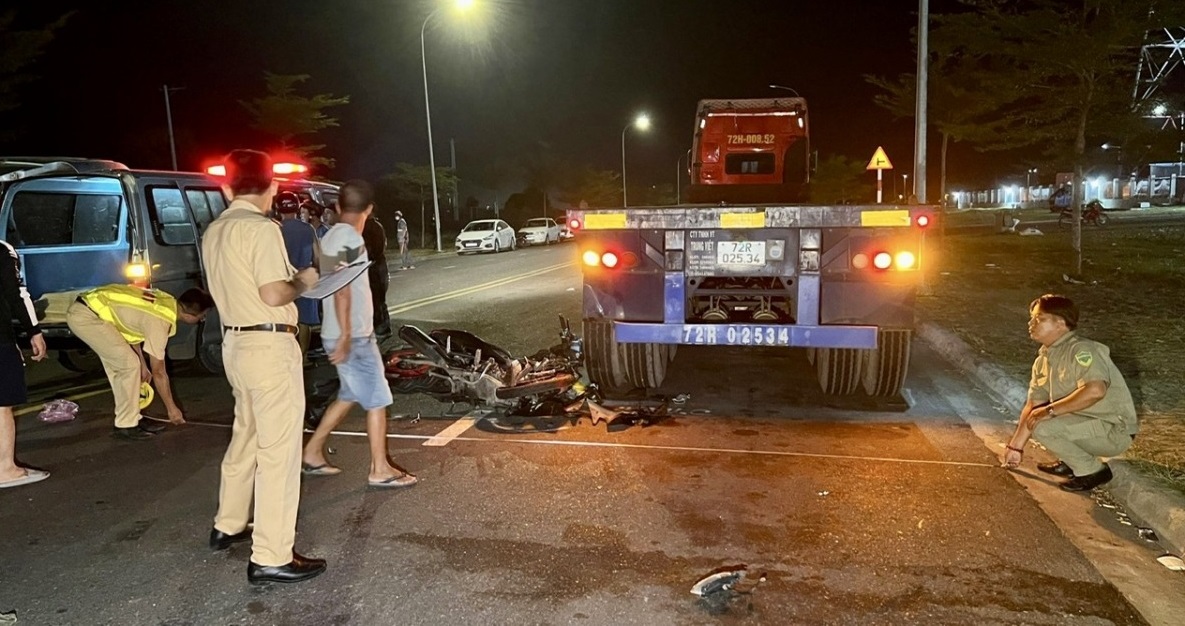 Đang lái xe trên đường, tài xế xe mô tô bất ngờ tông vào xe container đỗ ven đường khiến 2 người thương vong.