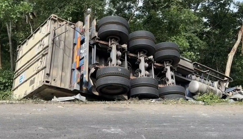 Xe đầu kéo lao xuống đèo lật nghiêng, tài xế tử vong