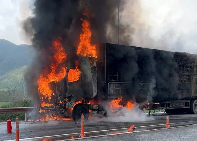 Khoảng 8 giờ 45 phút ngày 9-11, một xe đầu kéo bất ngờ bốc cháy dữ dội khi đang lưu thông trên tuyến đường bộ cao tốc Vũng Áng – Bùng, đoạn qua địa bàn tỉnh Hà Tĩnh.
