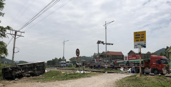 Chiếc xe tải băng ngang qua đường sắt thì đúng lúc tàu hỏa lao tới tông phải khiến 2 người đàn ông trên xe thương vong.