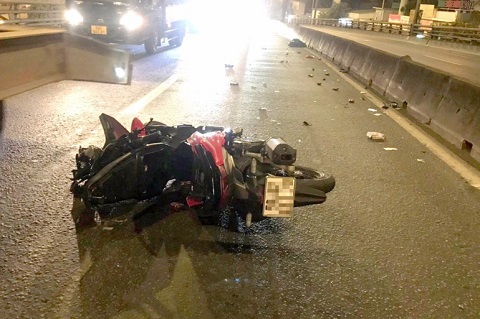Va chạm xe máy, một người rơi từ cầu vượt xuống đường nguy kịch