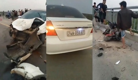 Bốn học sinh ở huyện Triệu Phong (Quảng Trị) đi xe đạp điện trên cầu bất ngờ bị ô tô chạy ngược chiều đâm phải. Tai nạn khiến 3 em bị thương, một em tử vong.