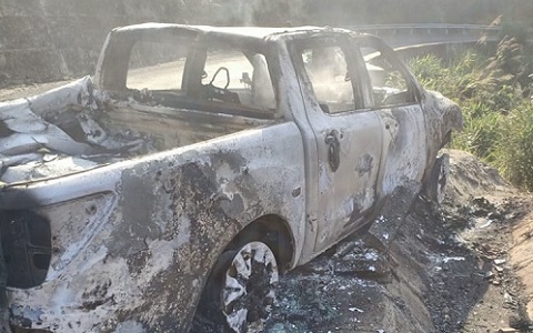 Cơ quan chức năng đang điều tra vụ việc xe bán tải cháy trơ khung cùng một người bị cháy biến dạng bên trong xe.