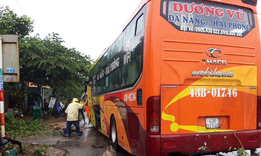 Xe khách giường nằm gặp tai nạn sau khi tránh xe máy ở Quảng Trị