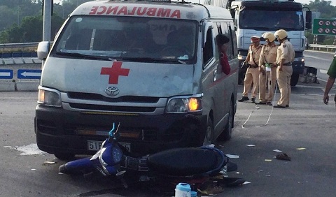 Xe cứu thương chở quan tài tông xe máy ở Đà Nẵng, 2 người nguy kịch