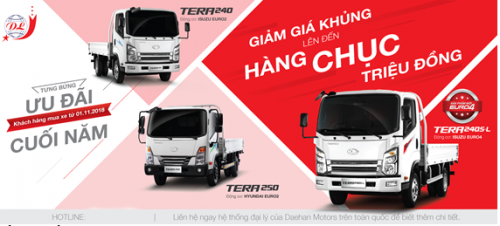 Nhằm hỗ trợ Quý khách hàng có thể sở hữu chiếc xe tải phù hợp nhất với hoạt động kinh doanh của mình, Đại lý 3S Teraco Dũng Lạc kết hợp với nhà máy Daehan Motors trân trọng áp dụng chương trình: “Giảm giá khủng lên đến hàng chục triệu đồng” nhân dịp cuối năm 2018.