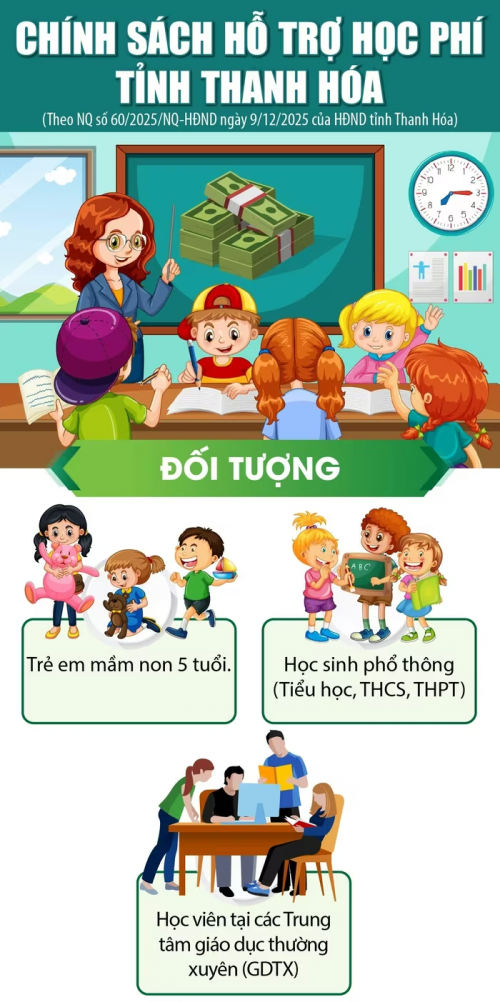 Chính sách hỗ trợ học phí của tỉnh Thanh Hóa từ năm học 2025-2026
