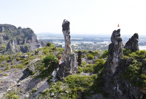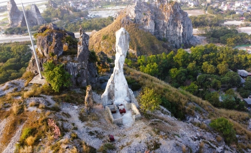 Danh thắng Hòn Vọng Phu trên núi Nhồi, phường Đông Quang, tỉnh Thanh Hóa "khoác áo mới" sau khi được chi 17 tỉ đồng gia cố, chống sập đổ. Ảnh: Tuấn Minh |