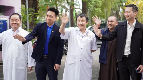 Đại diện các đơn vị đồng hành tổ chức "Chuyến xe yêu thương" chào tạm biệt các bệnh nhân |