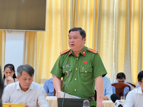 Thượng tá Âu Sơn Vũ -Phó Trưởng Phòng Cảnh sát kinh tế - Công an TP Cần Thơ, phát biểu tại buổi họp báo