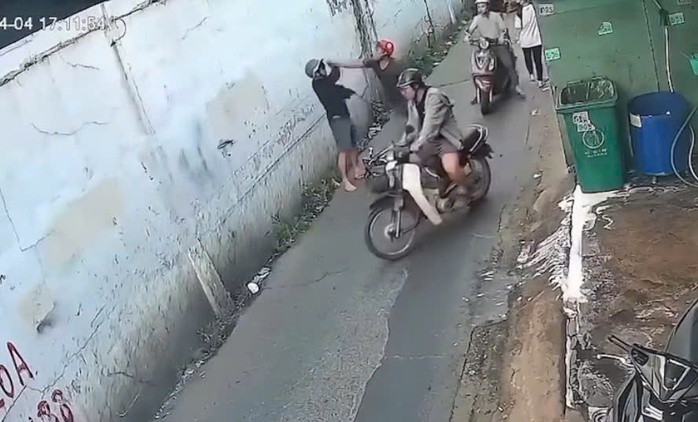 Chưa dừng lại, người này tiếp tục lao tới đánh nam sinh khi người này đang dắt xe vào lề đường.