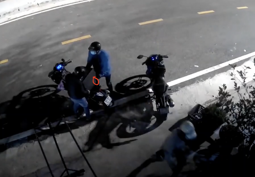 Camera an ninh ghi lại vào rạng sáng 18-1, có 4 đối tượng đi trên xe máy đến dừng trước cửa nhà chị Vân.