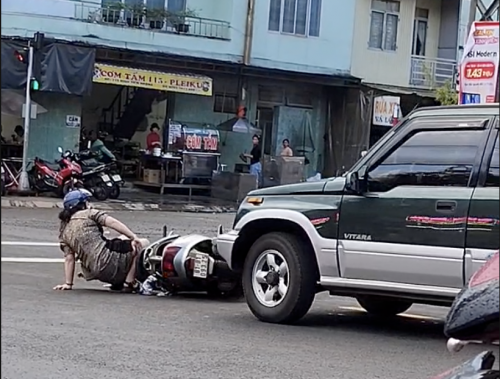 Xe 5 chỗ tông ngã xe máy do người phụ nữ điều khiển