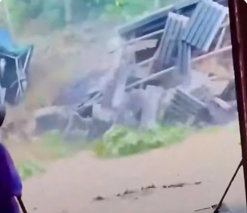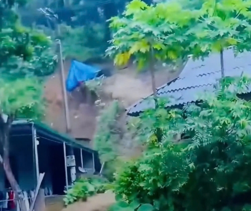 Clip sạt lở núi đè sập ngôi nhà sàn.