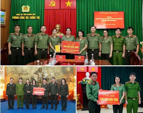 Tại tỉnh Khánh Hòa, bên cạnh phần kinh phí hỗ trợ dành cho Công an tỉnh, Đoàn công tác cùng đơn vị đồng hành là Công ty TNHH sản xuất và thương mại tổng hợp Nam Hà Nội đã trao tặng hơn 3.000 bộ quần áo mới và 52 chiếc chăn ấm cho bà con nhân dân xã Diên Điền, góp phần giúp bà con nhân dân sớm ổn định cuộc sống sau thiên tai.