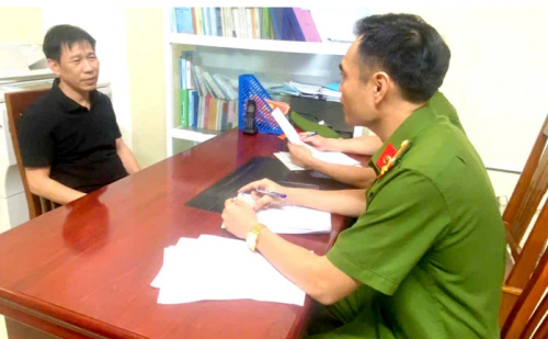"Trùm giang hồ" Mạnh "gỗ" tại cơ quan công an. Ảnh: Công an tỉnh Thanh Hóa |