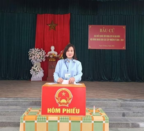 Bà Nguyễn Thị Hà, Phó bí thư Thường trực Đảng ủy xã Hoằng Tiến tham gia bỏ phiếu bầu cử. Bà Hà cho biết, trong ngày bầu cử, sau lễ khai mạc, lãnh đạo xã đã đi kiểm tra ở tất cả các điểm bầu cử. Nhìn chung, công tác bầu cử tại địa phương diễn ra an toàn, đúng quy định, cử tri đi bầu sớm... |