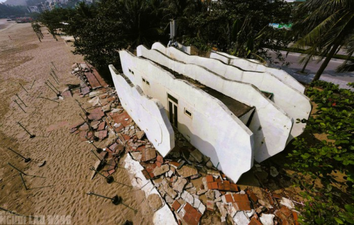 Một khu tắm tráng dọc bờ biển Sầm Sơn xuống cấp nghiêm trọng do ảnh hưởng của thiên tai |