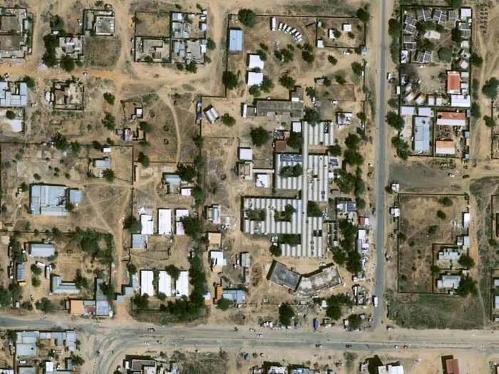 Ảnh vệ tinh do Airbus DS chụp ngày 28-10-2025 cho thấy các vật thể xuất hiện trên mặt đất tại Bệnh viện Phụ sản Saudi ở El Fasher, Sudan. Ảnh: AP |