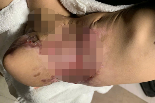 Trải qua nhiều ca phẫu thuật và những tháng ngày kiên cường chống chọi, cháu đã qua cơn nguy kịch nhưng phải mang thương tật vĩnh viễn tới 91%, mất đi cả hai chân. Những cơn đau hành hạ khiến cháu nhiều đêm giật mình khóc thét, vết thương chưa lành thường xuyên lở loét.