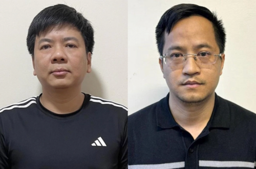 Bị can Nguyễn Ngọc Thủy và Đặng Văn Hiển (Trưởng ban quan hệ cổ đông Công ty EGame). Ảnh: Bộ Công an |