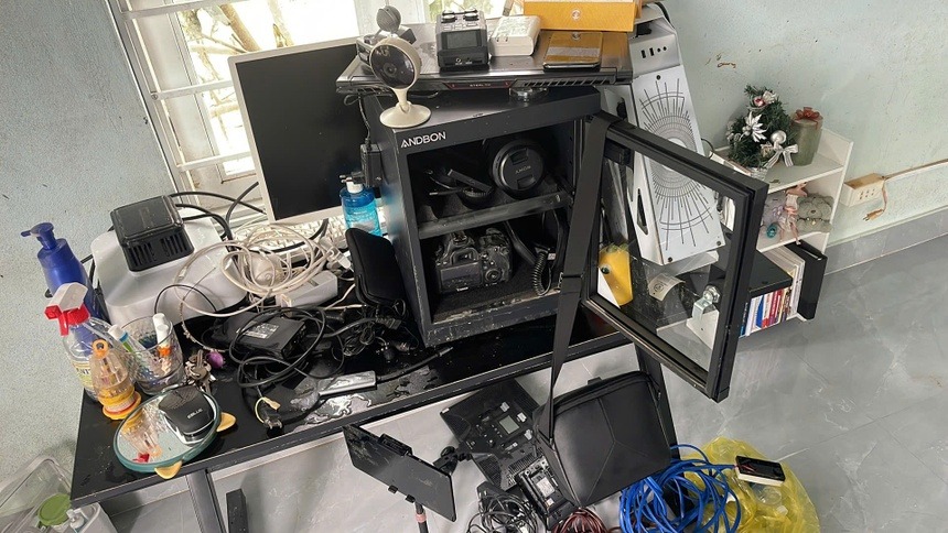 Nhiều thiết bị điện tử đắt tiền của Huỳnh bị hư hỏng do nước ngập. |