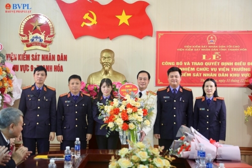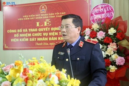 Tại buổi lễ, theo sự phân công, đồng chí Nguyễn Văn Dũng, Chánh Văn phòng VKSND tỉnh thông báo Công văn của VKSND tối cao về việc điều động, bổ nhiệm chức vụ lãnh đạo, quản lý và Công bố Quyết định điều động, bổ nhiệm chức vụ Viện trưởng VKSND khu vực 9 - Thanh Hoá.