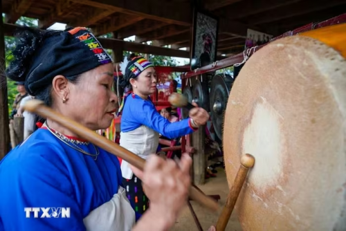 Sau phần nghi thức là phần hội với nhiều loại hình âm nhạc dân gian, truyền thống. (Ảnh: Khánh Hòa/TTXVN) |