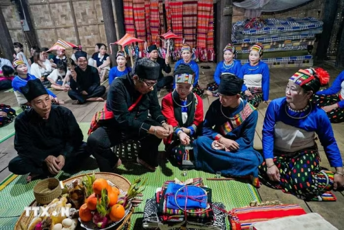 Ông Mơ thực hiện nghi thức của lễ xin cưới lần hai. (Ảnh: Khánh Hòa/TTXVN) |
