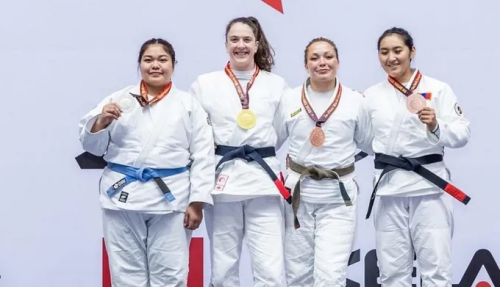 Tuyển thủ Thanh Trúc (ngoài cùng bên trái) là 1 trong những võ sĩ có nhiều kết quả huy chương ở giải thế giới 2025 đang tổ chức tại Thái Lan. Ảnh: WORLDJUJITSU |