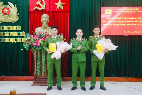 Trước đó, đồng chí Phó Giám đốc Công an tỉnh đã tổ chức ghi nhận, biểu dương, tặng quà chúc mừng thành tích xuất sắc của Thượng úy Lê Văn Dũng và Thượng sỹ Lường Văn Xuân, cán bộ Phòng Cảnh sát PCCC và CNCH đã xuất sắc dành Huy chương Bạc trong các Cuộc thi Quốc tế về Cảnh sát Cứu hỏa diễn ra tại Hoa Kỳ (tháng 7) và Singapore (tháng 11) vừa qua. Thành tích này không chỉ là niềm tự hào của đơn vị mà còn góp phần lan tỏa hình ảnh bản lĩnh, chuyên nghiệp của lực lượng Cảnh sát PCCC và CNCH, Công an tỉnh Thanh Hóa trên đấu trường khu vực và quốc tế.
