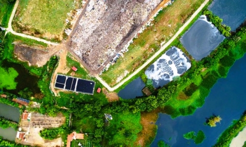 Các hồ nước quanh bãi rác hiện lên 1 màu đen ngòm |
