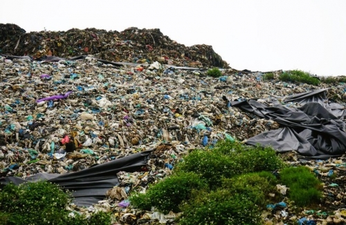 Những núi rác được phủ bạt để giảm mùi hôi thối, nhưng theo thời gian những tấm bạt đã bị rách, hư hỏng |
