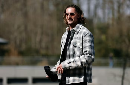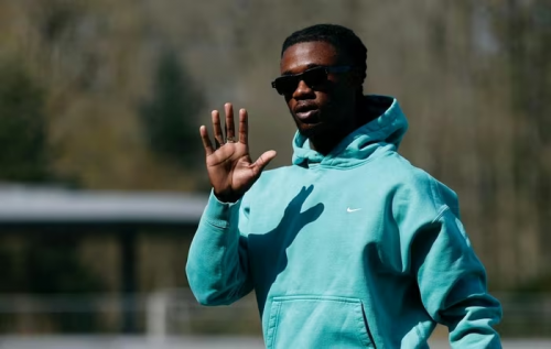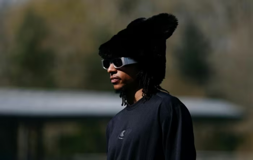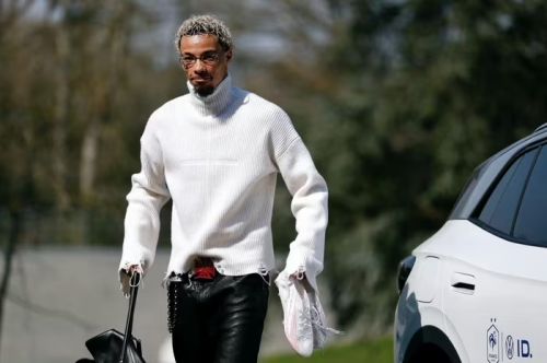 Desire Doue xuất hiện giản dị với chiếc áo khoác trơn màu. Ảnh: Reuters. |