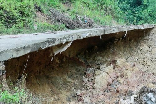 Tuyến đường 522C vào hang Con Mông - di sản quốc gia đặc biệt bị sạt lở nghiêm trọng, tiềm ẩn nguy cơ mất an toàn tại xã Thành Vinh, tỉnh Thanh Hoá. Ảnh: PV |