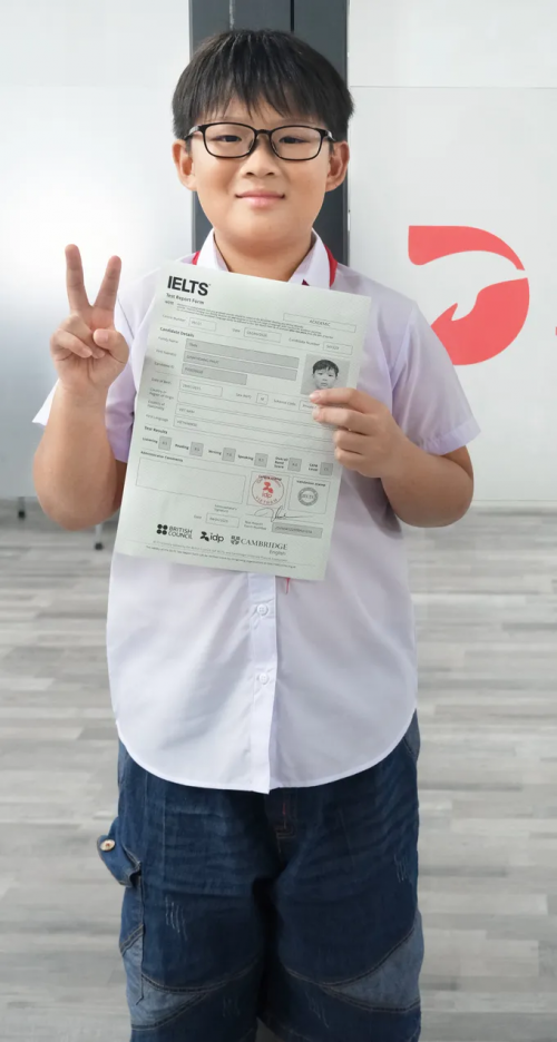Hoàng Phúc đã làm quen với tiếng Anh từ lúc 3 tuổi. Ở nhà, em thường xuyên đọc sách, truyện, xem video bằng tiếng Anh. Tiếng Anh dần trở thành thói quen của cậu học trò nhỏ. Khi vào bậc tiểu học, em tích cực tham gia các kỳ thi toán, khoa học quốc tế để trau dồi thêm kiến thức và khả năng ngoại ngữ. Ở lần đầu tiên thử sức với chứng chỉ IELTS, Phúc đã nhẹ nhàng hoàn thành các bài thi với tâm trạng thoải mái, không quá áp lực.