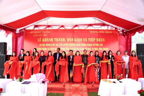 UBND xã Đông Thành và gia đình hoa hậu Đỗ Thị Hà tổ chức lễ khánh thành, bàn giao và tiếp nhận dự án nâng cấp, cải tạo tuyến đường thôn Cầu Thôn (Ảnh gia đình cung cấp). |
