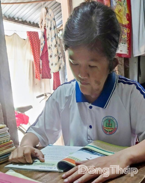 Góc học tập của em Bùi Thị Thùy Dương là chiếc bàn nhỏ kê ở một góc nhà. |