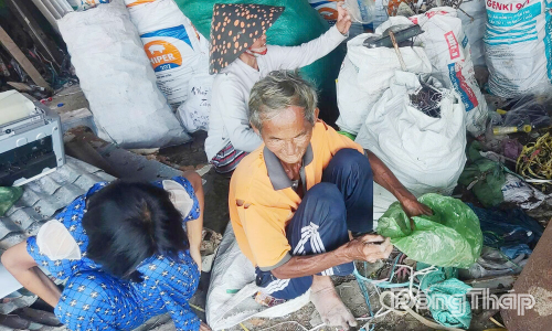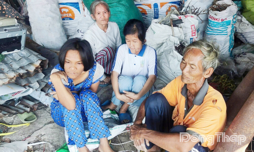 Công việc nhặt ve chai, phế liệu mỗi ngày chỉ kiếm được vài chục ngàn đồng, không thể đủ trang trải cho cuộc sống của cả gia đình có đến 4 người đều bệnh tật. |