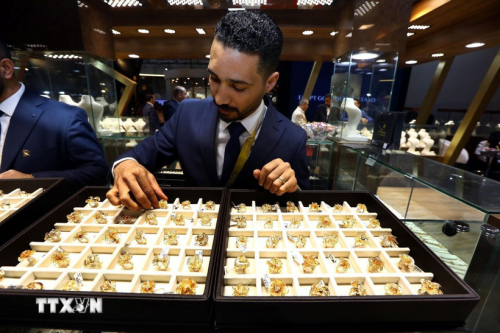 Trang sức vàng được trưng bày tại triển lãm ở Cairo, Ai Cập. (Ảnh: THX/TTXVN)