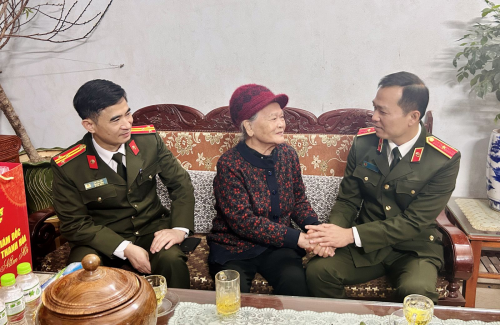 Đồng chí Giám đốc Công an tỉnh đã tặng quà chúc Tết Anh hùng Lực lượng vũ trang Nhân dân Ngô Thị Tuyển |