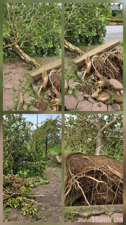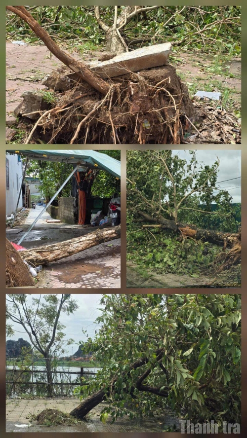 Những ngày sau bão số 10 Thanh Hóa đang phải "oằn mình" gánh chịu thiệt hại nặng nề. Ngày 2/10, ghi nhận thực tế của phóng viên Báo Thanh tra, nhiều cây bằng lăng có đường kính từ 20 – 30cm bị bật rễ, ngã đổ chắn cả vỉa hè, một số cây gãy ngang thân vẫn nằm chỏng chơ, chưa được thu dọn. Những hàng cây từng tạo bóng mát, tô điểm sắc tím cho con đường, nay trở nên tiêu điều, tang thương sau trận cuồng phong.