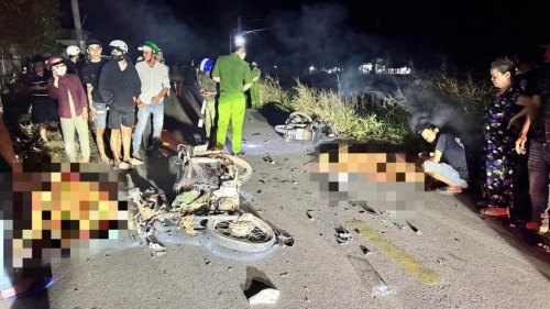 Cú tông đối đầu trực diện khiến cả hai phương tiện biến dạng hoàn toàn, phần đầu xe bể nát và nhiều mảnh vỡ văng tung tóe trên mặt đường. Hai người điều khiển xe máy được xác định đã tử vong tại chỗ do chấn thương quá nặng.