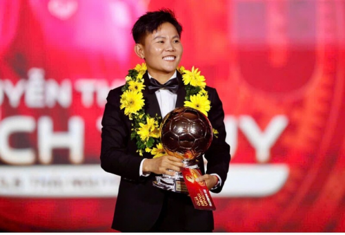 Bích Thùy nhận danh hiệu Quả bóng vàng nữ năm 2025. (Ảnh: SGGP) |