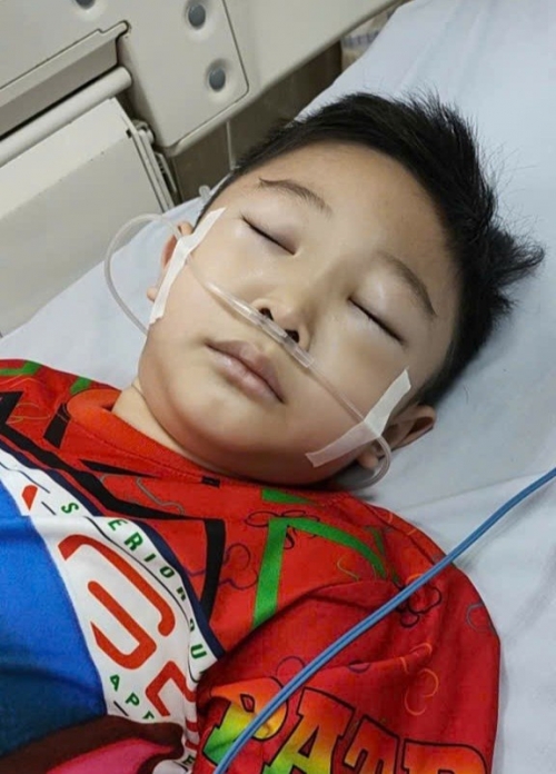 Bé Phạm Quốc Trọng (học sinh lớp 1) đang điều trị tại Bệnh viện Nhi đồng TPHCM. |