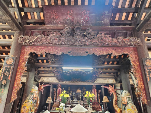 Bước qua cổng tam quan nhuốm màu thời gian, du khách như lạc vào không gian tĩnh tại. Những họa tiết chạm khắc tứ linh, hoa cỏ, rồng chầu mặt nguyệt… được thể hiện tinh xảo, tạo nên vẻ uy nghi, linh thiêng.