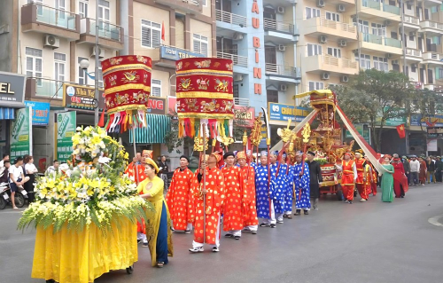 Nghi thức rước kiệu trong Lễ hội cầu phúc đền Độc Cước thu hút đông đảo người dân và du khách |