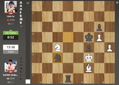 Lê Quang Liêm (đen) giành chiến thắng chung cuộc sau 68 nước đi - Ảnh chụp màn hình |