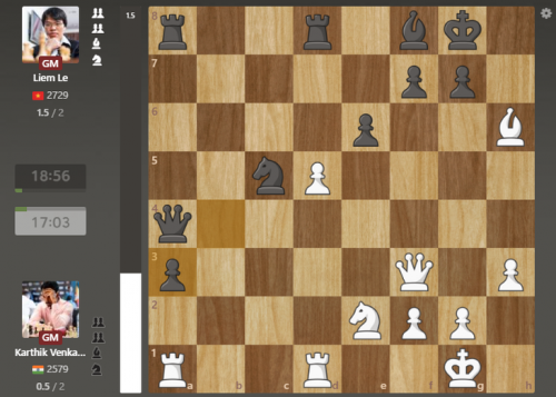 Ngoài ra trong khoảnh khắc then chốt, khi đối thủ Karthik Venkataraman (Azerbaijan) có một nước đi không hoàn hảo là Rd1 ở nước thứ 25, đại kiện tướng Lê Quang Liêm đã chớp lấy cơ hội một cách triệt để.